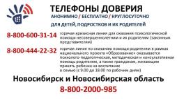 В рамках федерального проекта «Современная школа" нац. проекта «Образование» проводятся бесплатные консультации для родителей по вопросам развития, воспитания, обучения детей от 0 до 18 лет. Телефон для записи: 8(383) 212-0-999